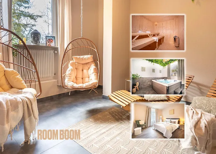 Offering a sauna and an indoor pool for a relaxing experience, Villa Rheinsteig Sauna-Whirlpool-Kino Bendorf is located a 10-minute drive from the enclosed butterfly garden "Garten Der Schmetterlinge".